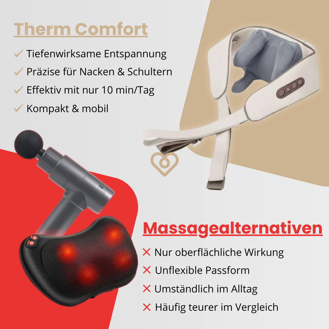 Der WOHLKERN® Therm Comfort wurde entwickelt, um den Belastungen des modernen Alltags gezielt entgegenzuwirken. Lange Stunden am Schreibtisch, der ständige Blick auf Bildschirme und einseitige Haltungen führen oft zu Verspannungen im Nacken, in den Schultern und im oberen Rücken. Dieses Gerät sorgt nicht nur für kurze Entspannung, sondern wirkt dort, wo Anspannung am häufigsten spürbar wird.