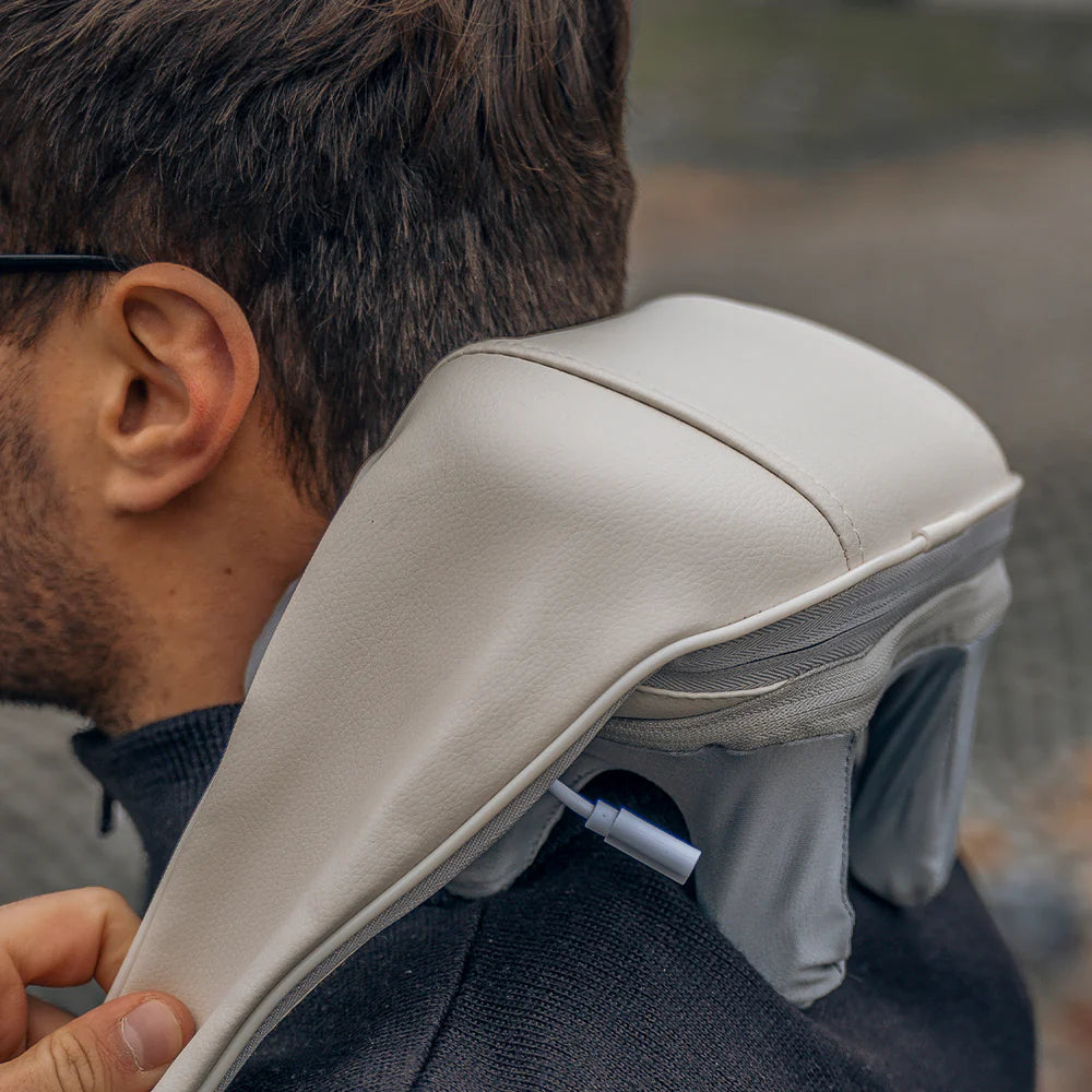 Sechs sanft rotierende Massageköpfe ahmen die Bewegungen einer Shiatsu-Massage nach und lösen gezielt Verspannungen. Die wechselnden Drehrichtungen fördern die Durchblutung und schenken dir das Gefühl professioneller Hände – egal ob zu Hause, im Büro oder unterwegs.